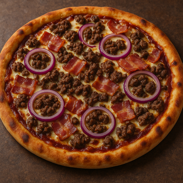 Jeder Biss bietet die perfekte Balance zwischen würzig, rauchig und herzhaft. Das Hackfleisch sorgt für den kräftigen Biss, während der Bacon mit seinem knusprig-salzigen Aroma für einen echten BBQ-Touch sorgt. Die roten Zwiebeln bringen leichte Süße und Frische ins Spiel, und der cremige Mozzarella verbindet alles zu einem harmonischen Ganzen.