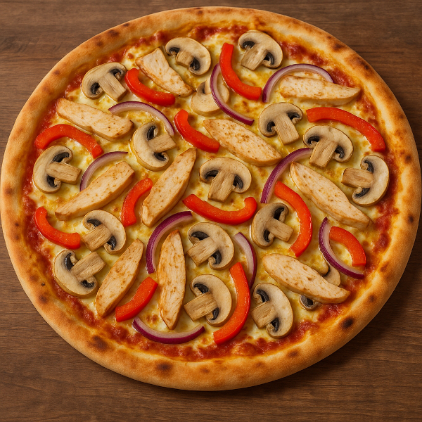 Der erste Biss überrascht mit einer harmonischen Mischung aus mildem Curry und saftigem Hähnchenfleisch, begleitet von der leichten Süße der Paprika und der feinen Würze der roten Zwiebeln. Die Champignons verleihen der Pizza eine erdige Tiefe, während der Mozzarella alles sanft miteinander verbindet – cremig, würzig und perfekt ausbalanciert.